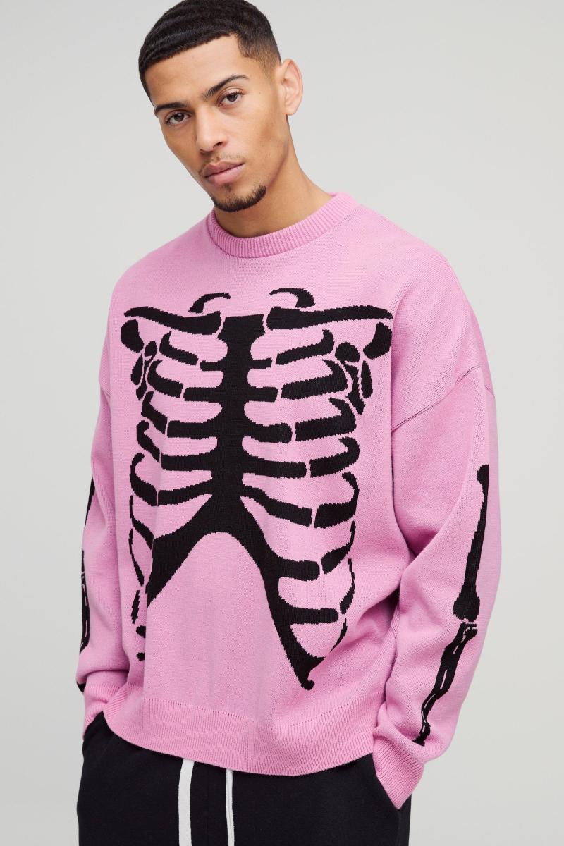 Негабаритна крапла плечна скелетна друк трикотажного джемпера