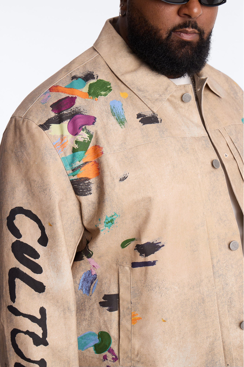 Ця укорочена куртка створена для тих, хто цінує оригінальність та міський стиль. Ефект бризок фарби надає їй динамічності та артистичного шарму. Вільний крій забезпечує комфорт, а міцний матеріал гарантує довговічність. Ідеальний вибір для створення невимушених та вражаючих образів.
