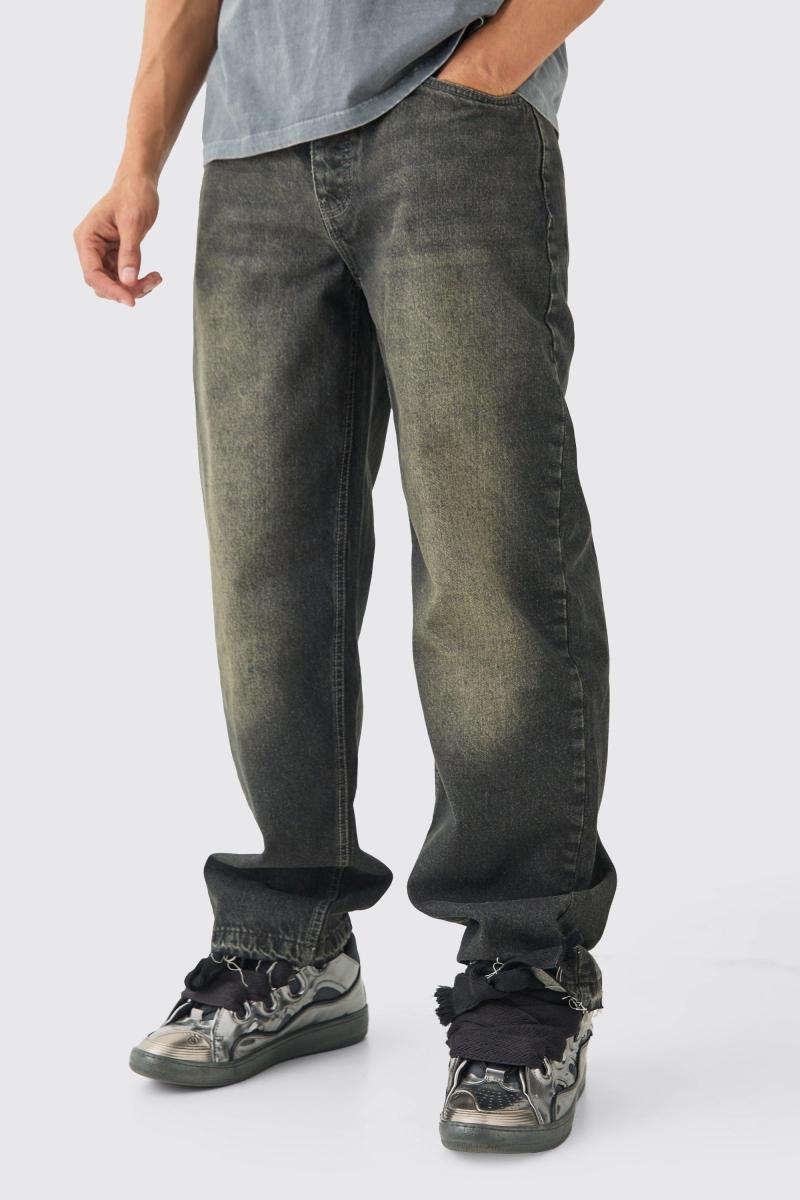 Мішкуваті сірі жорсткі джинси зі спущеним краєм