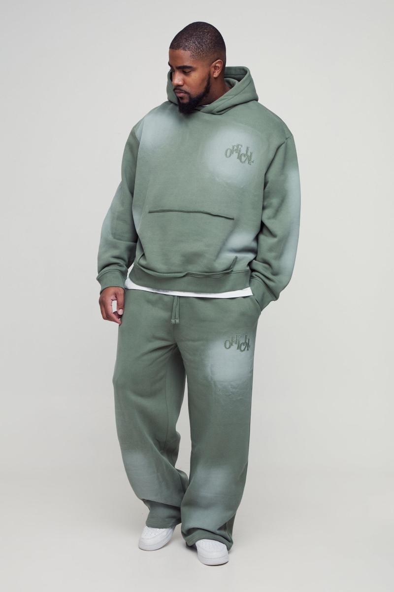 Крім того, великий спортивний костюм із капюшоном і капюшоном із розмитим одягом і аплікаціями