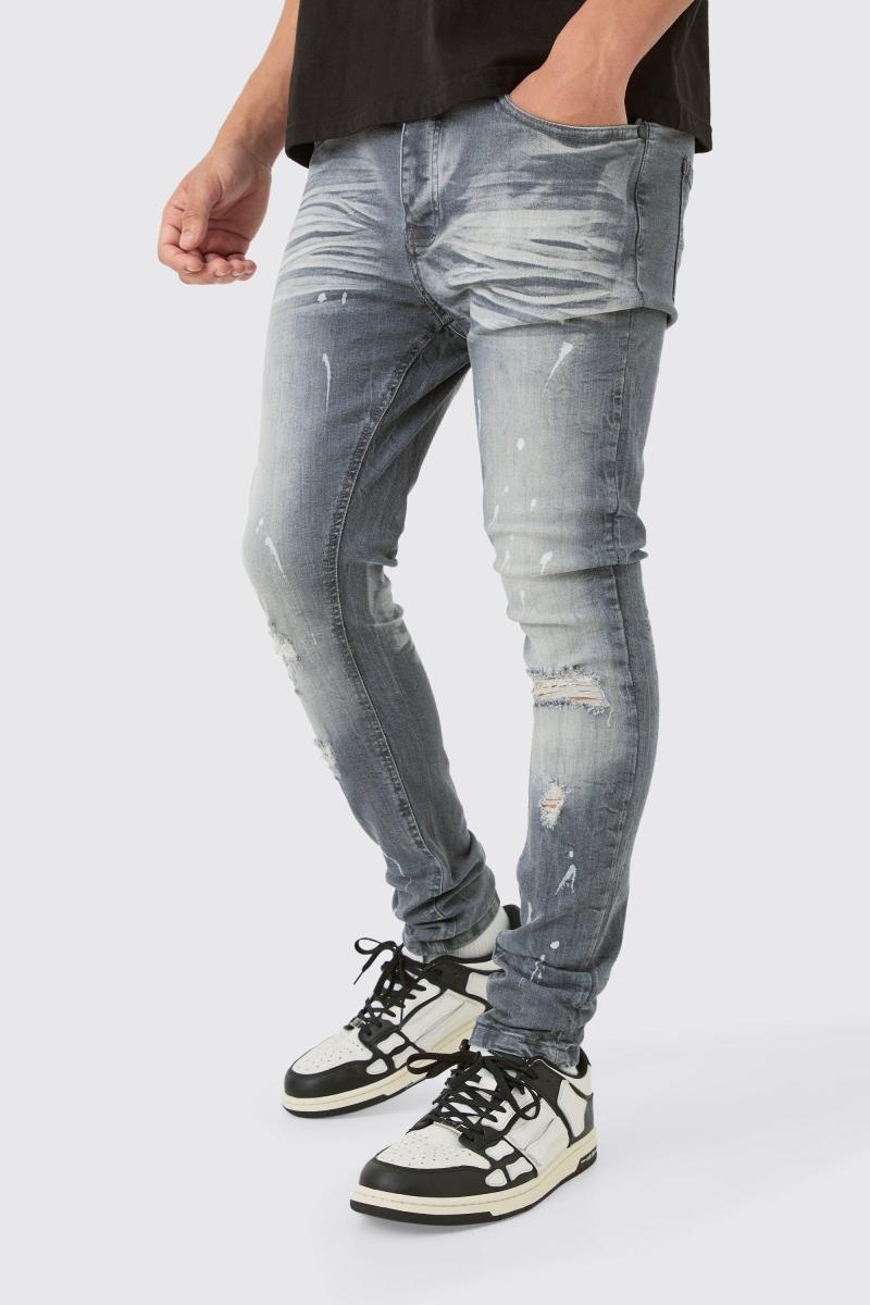 Супервузькі стрейч-рвані джинси брудного прання