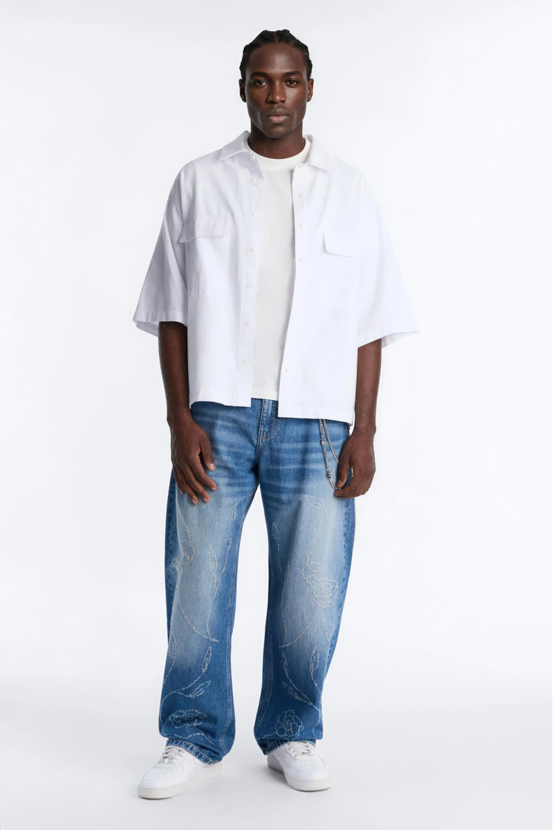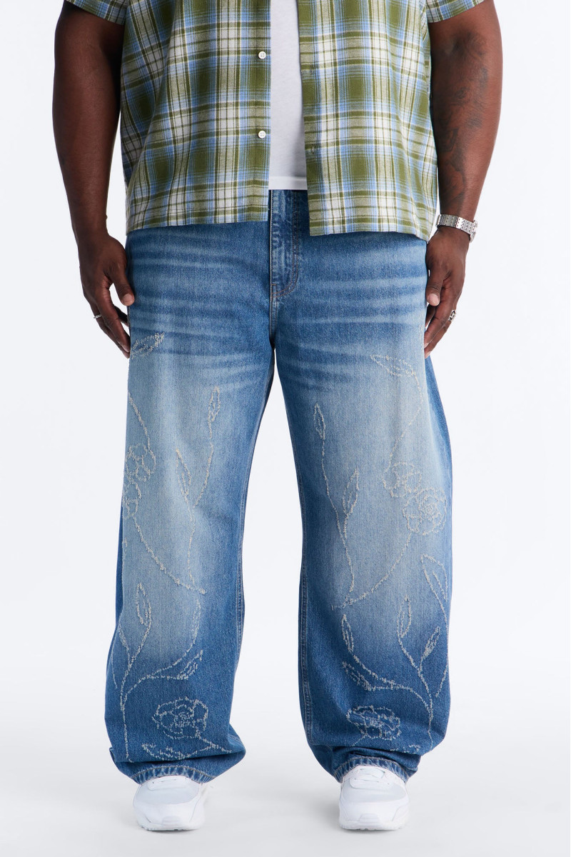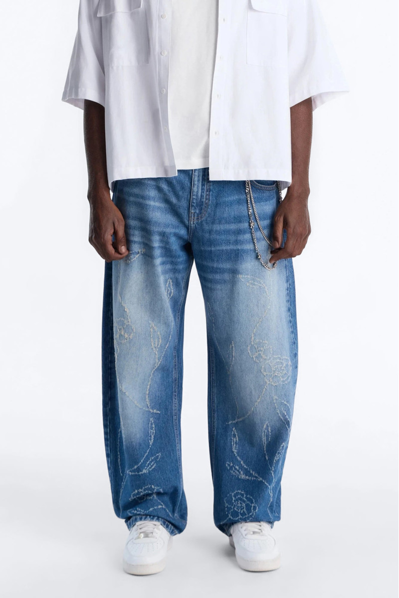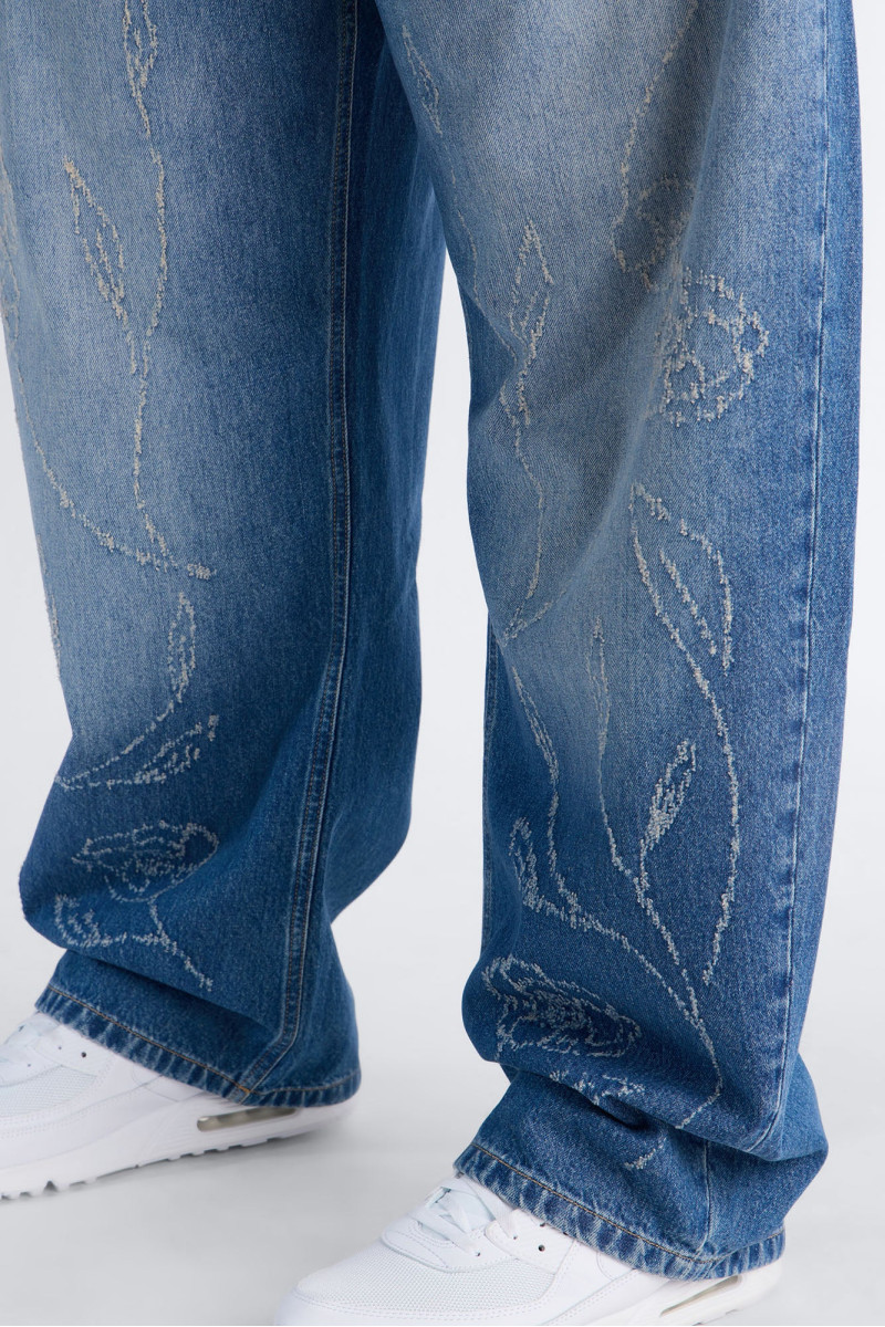 Стильні джинси Barrel з витонченим візерунком Etched Floral. Особливість моделі Barrel – це вільний крій, який звужується донизу, створюючи комфортний та модний силует. Оригінальний візерунок, нанесений методом травлення (etched), додає вишуканості та унікальності. Ці джинси чудово підійдуть для створення невимушених та елегантних образів на кожен день.