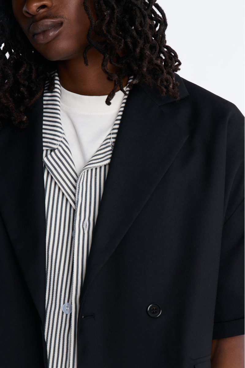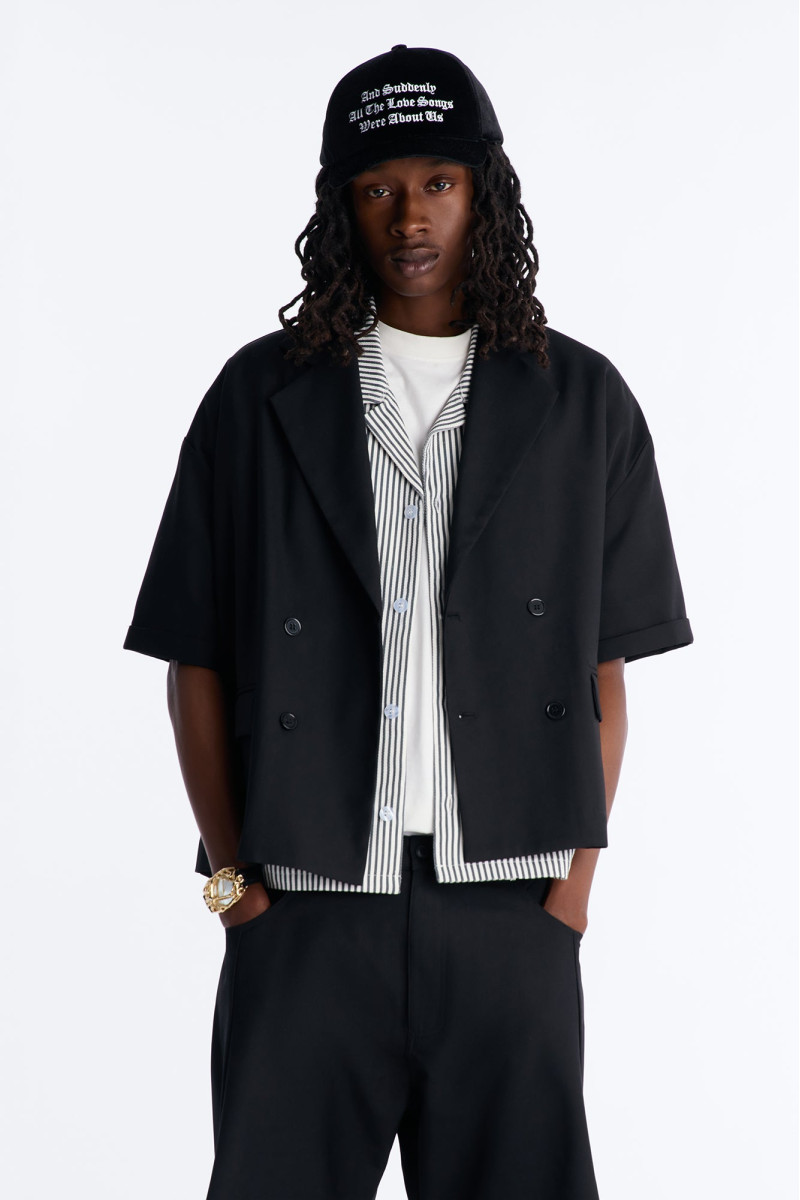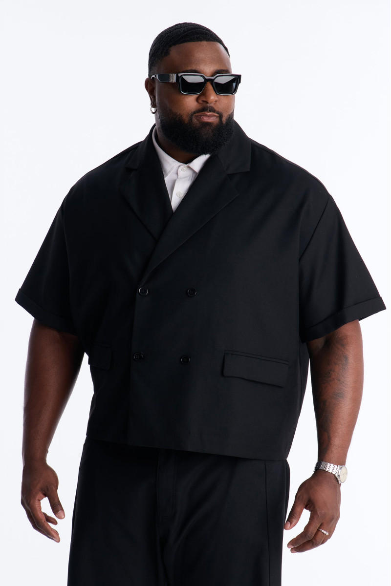 Сучасний блейзер вільного крою з акцентом на деталях. Його укорочена довжина та об'ємний силует створюють модний образ, а оригінальна застібка додає елегантності. Цей блейзер чудово доповнить як кежуал, так і більш формальні вбрання, додаючи нотку вишуканості.