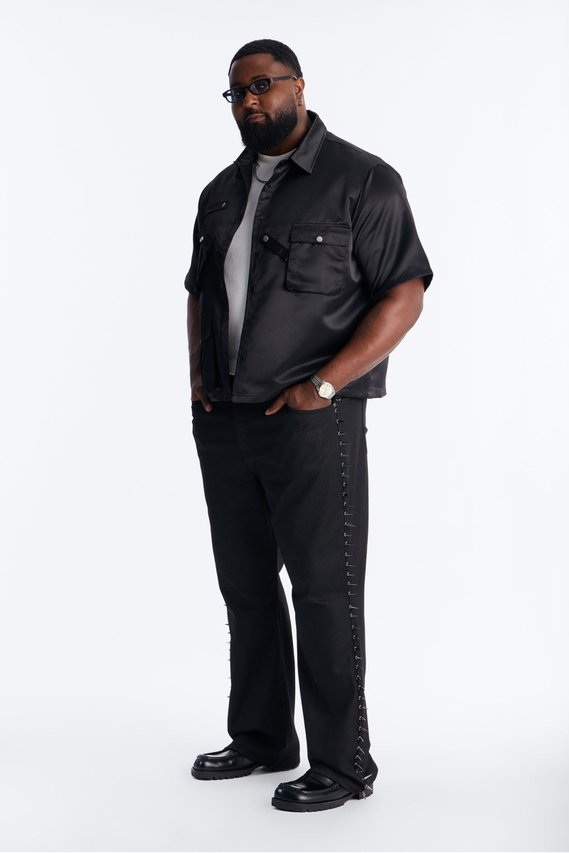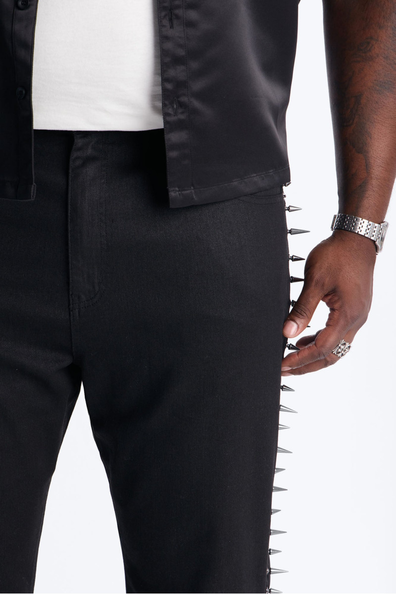 Ефектні джинси Slim Flare з восковим покриттям, що надає їм унікального вигляду. Модель Stacked Slim Flare характеризується приталеним кроєм, який розширюється донизу, створюючи витончений силует. Воскова обробка надає тканині легкого блиску та вишуканості, а акценти Cyber Spike додають зухвалості та сучасності. Ці джинси ідеально доповнять ваш образ, надавши йому індивідуальності та стилю.