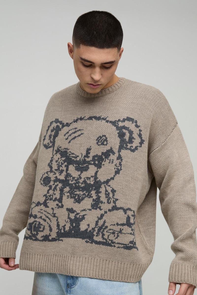Негабаритний плюшевий графічний трикотажний джемпер