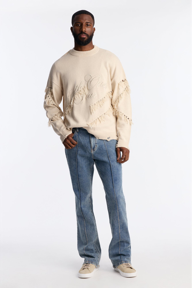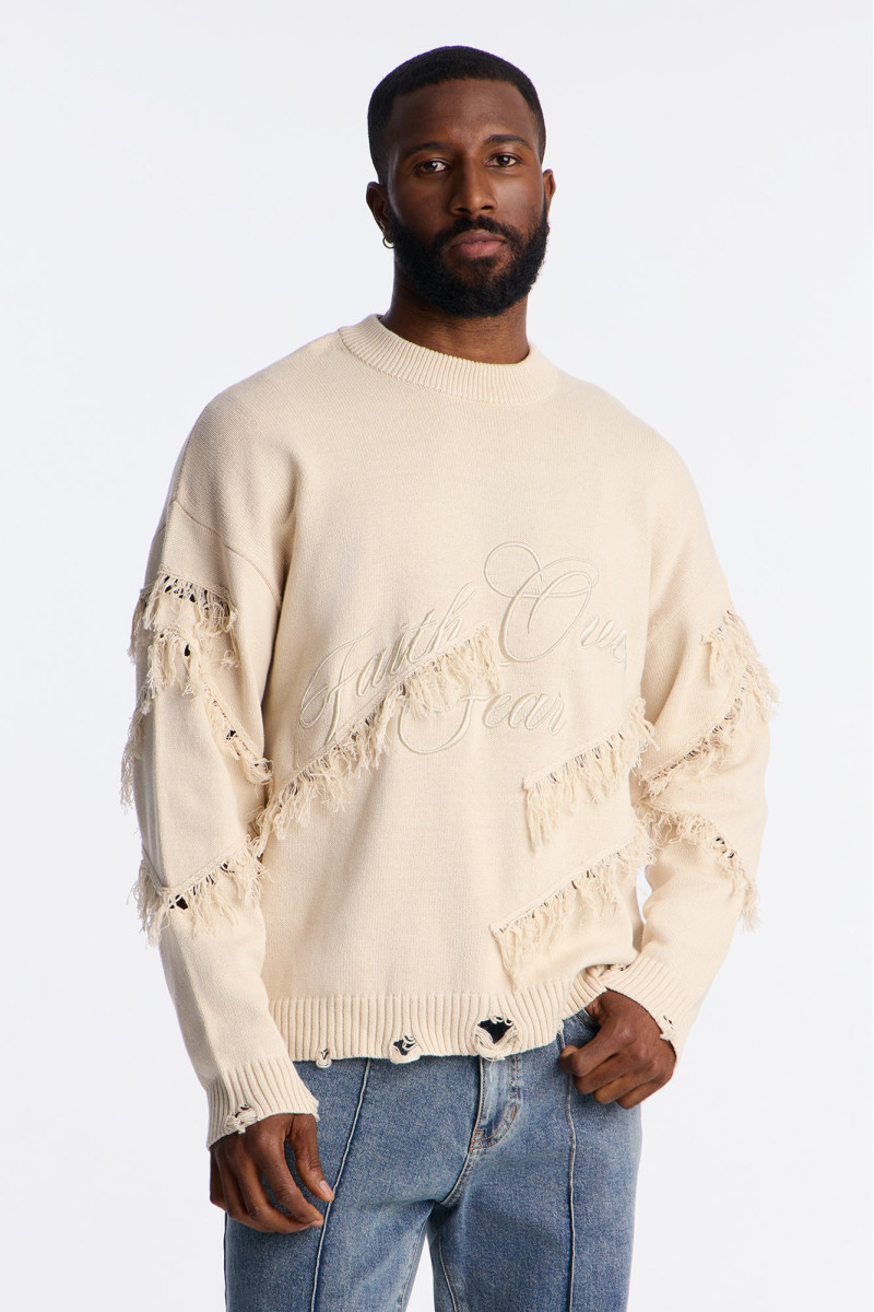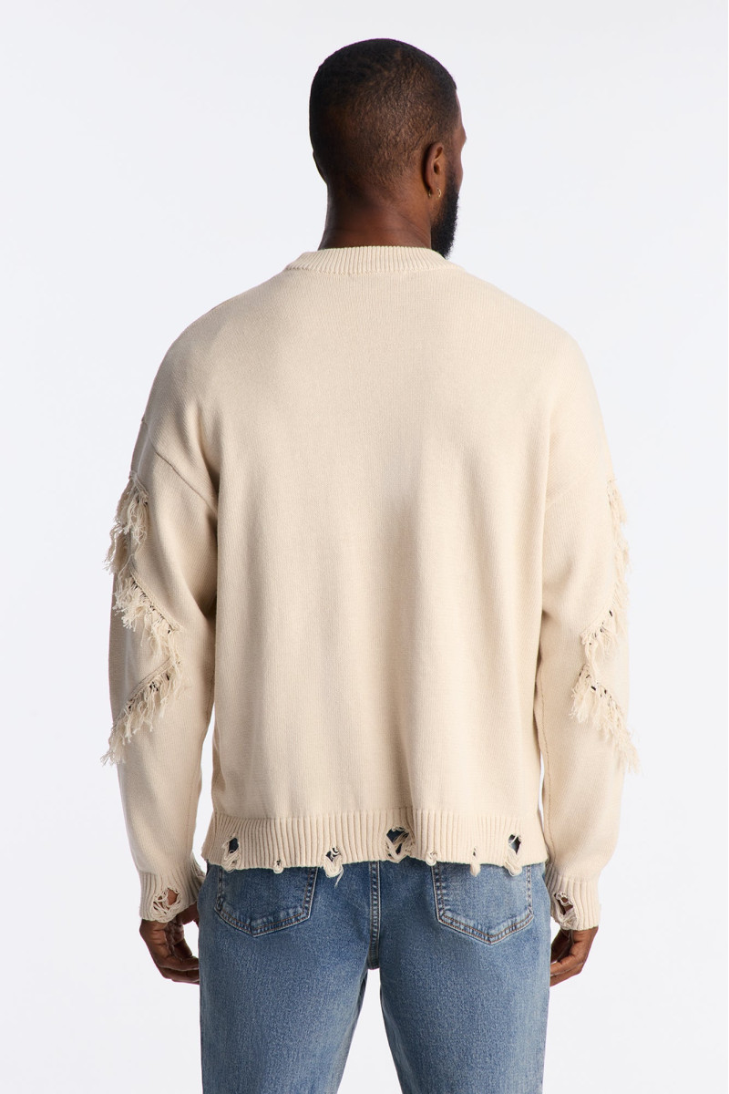 Цей светр з довгим рукавом і круглим вирізом має унікальний distressed дизайн, що надає йому особливого шарму. Виготовлений зі 100% бавовни, він забезпечує максимальний комфорт та повітропроникність. Ідеальний вибір для тих, хто цінує стиль і комфорт. Щоб зберегти автентичний вигляд виробу, будь ласка, уважно дотримуйтесь інструкцій з догляду. Склад: 100% бавовна. Країна-виробник: Імпортований.