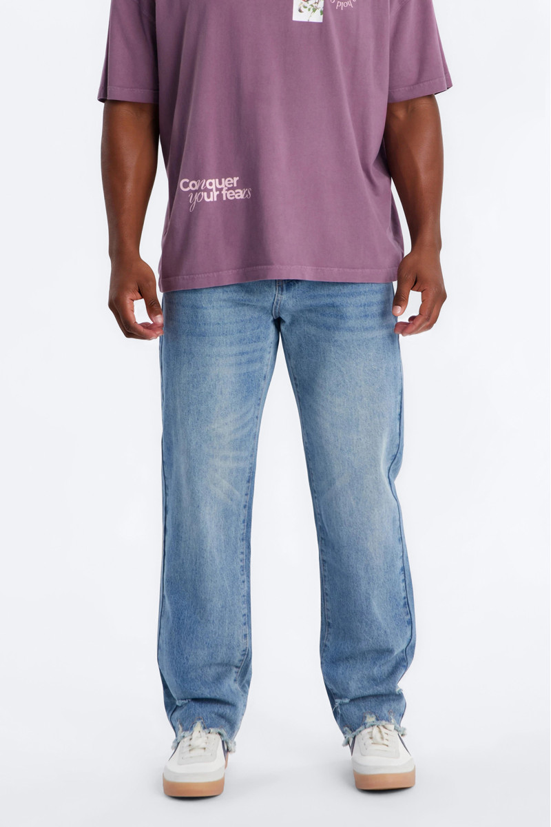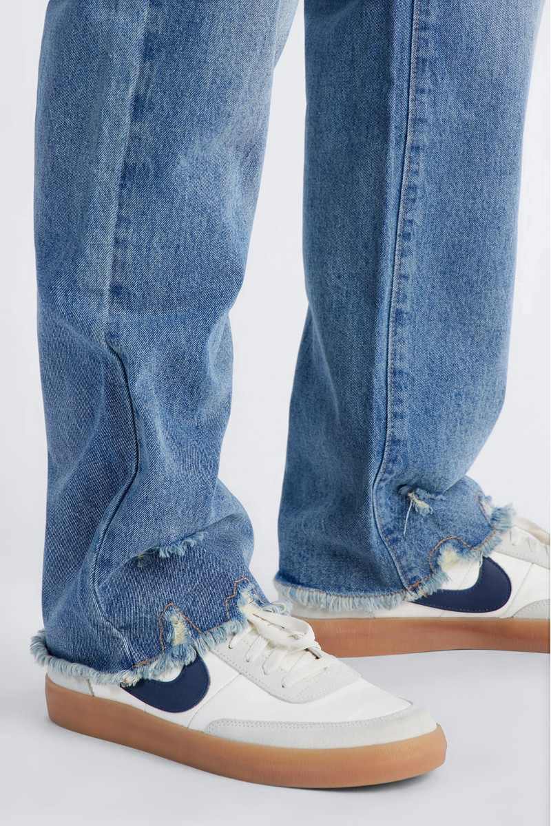 Класичні прямі джинси Straight з ефектом необробленого краю (Raw Edge). Модель Straight має прямий крій, що пасує до будь-якого типу фігури, забезпечуючи комфорт та універсальність. Необроблений край додає зухвалого та трендового акценту, роблячи ці джинси особливими. Вони ідеально підходять для створення сучасних та невимушених образів.